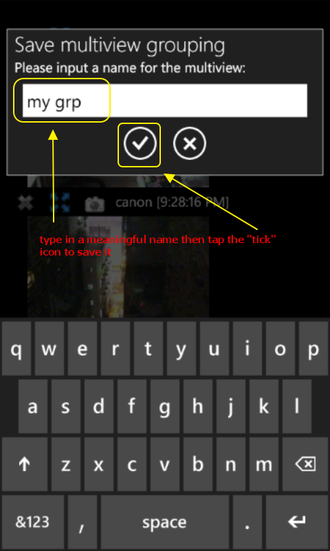 c) Alternatively, you can tap the "Setup" icon in main screen and then choose the camera from "My Cameras" list; then go ahead, but don't forget to tap the "save" button at the end.